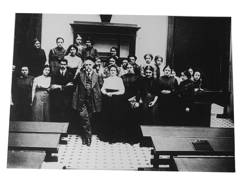 Профессора, покинувшие Московский университет в 1911 году. Сидят: В. П. Сербский, К. А. Тимирязев, Н. А. Умов, П. А. Минаков, М. А. Мензбир, А. Б. Фохт,
